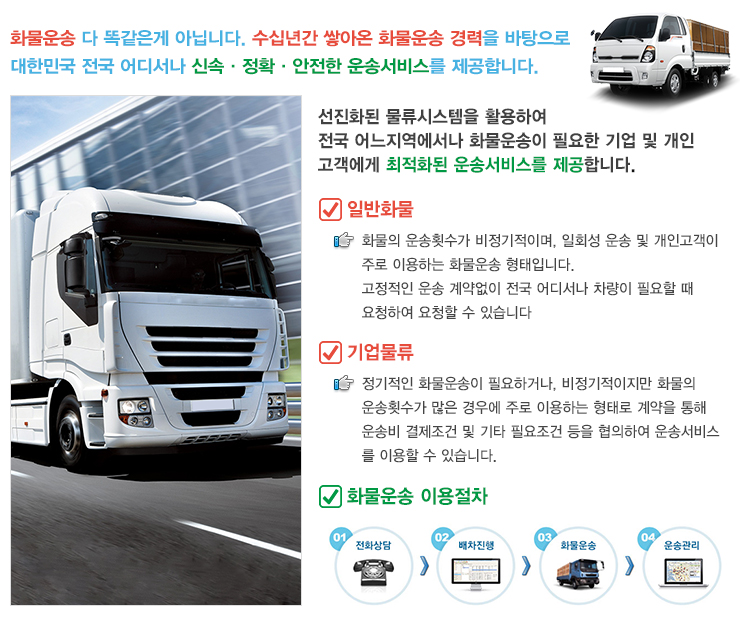 고객 만족을 위해 최선을 다하는 화물운송 전문기업